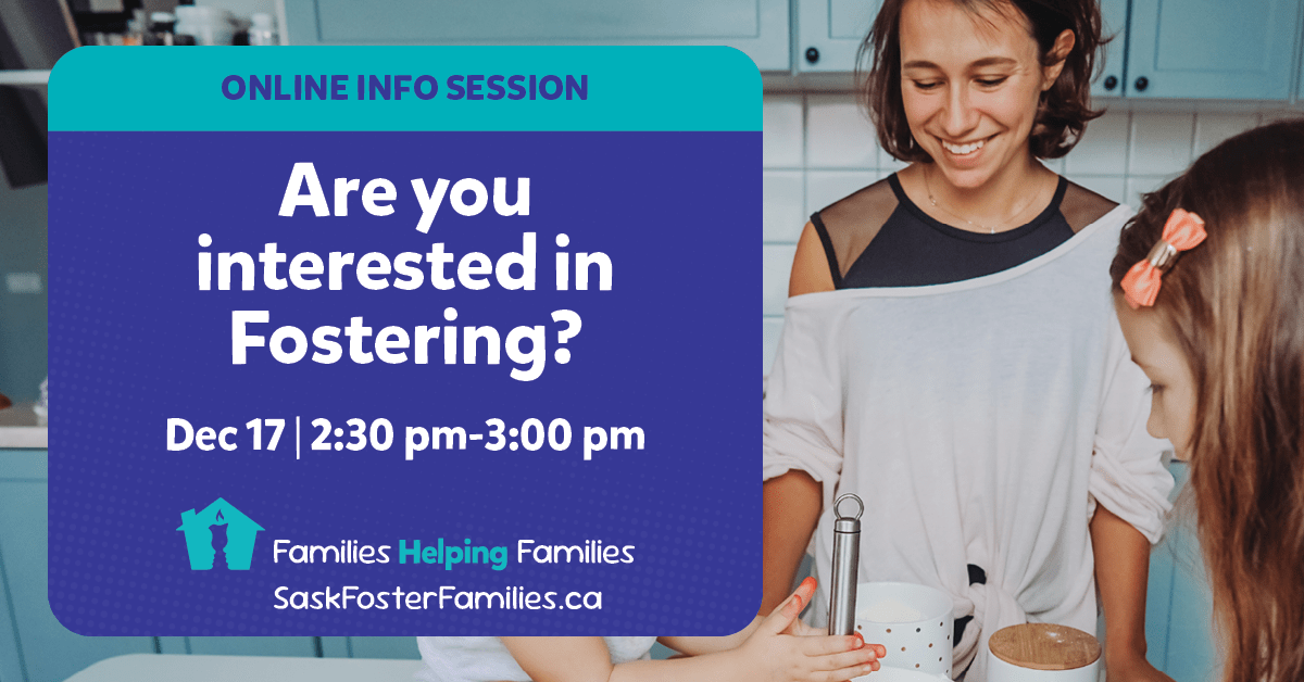 Are you interested in becoming a foster parent? Join us for an online information session from 2:30 PM - 3:00 PM.