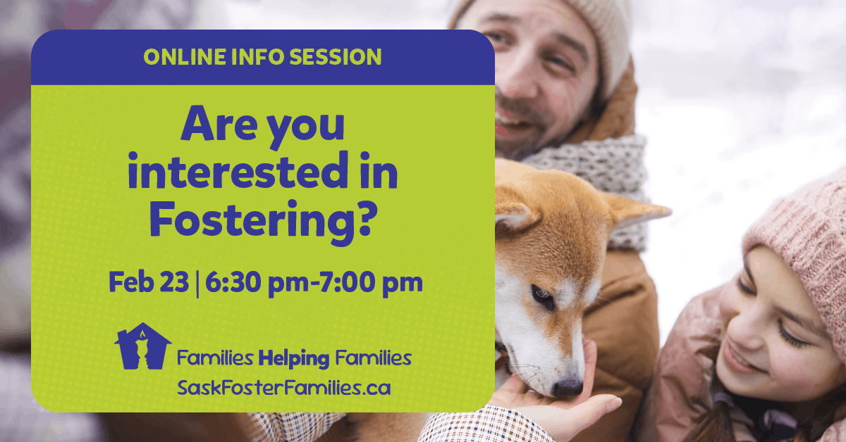 Are you interested in becoming a foster parent? Join us for an online information session from 7:00 PM - 7:30 PM.
